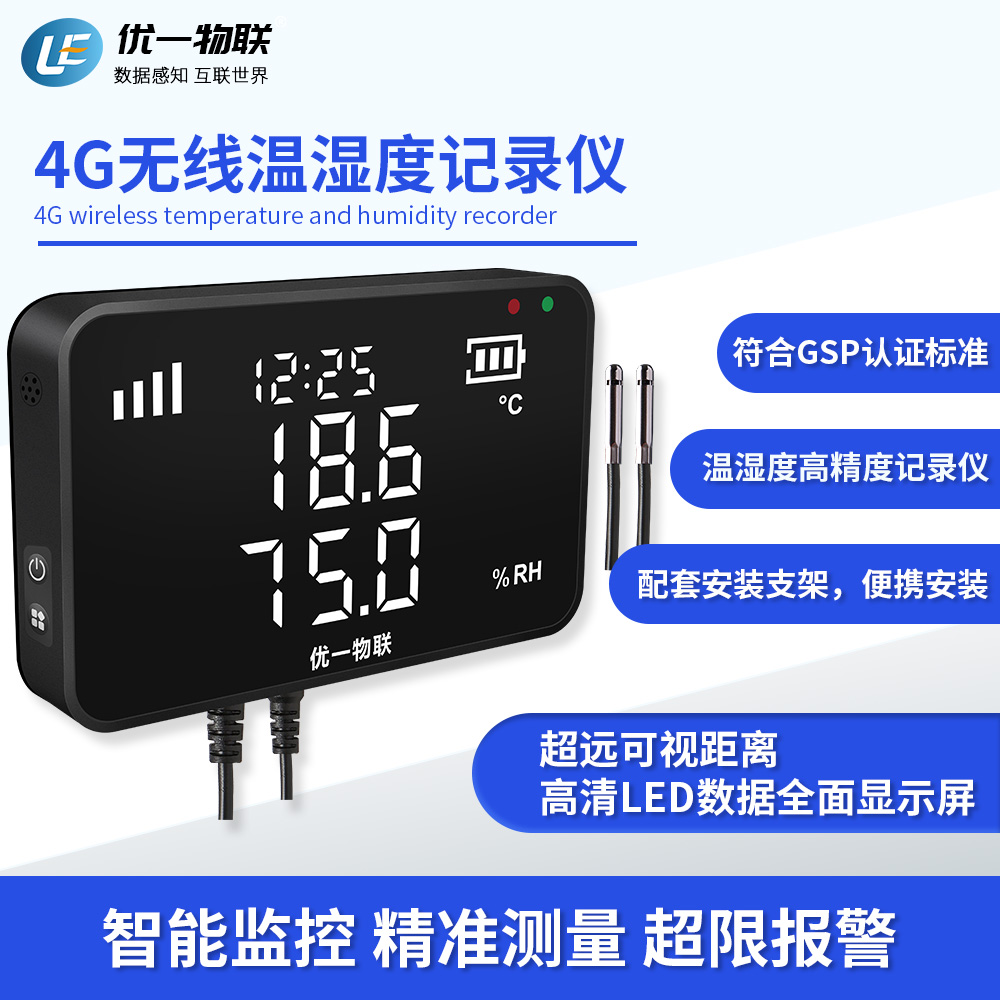 S200G 4G產品系列是一款安裝在固定場所的無線溫濕度記錄儀,高清全屏LED顯示,可視距離遠,高精度,大存儲容量,配套支架安裝。 廣泛應用于農業、食品、醫藥、化工、電子、實驗室等在線監測系統中,該記錄儀采用瑞士原裝進口一體式傳感器,內置充電鋰電池,支持外電供電充電,超低功耗,且都支持外置可調聲光報警器。
