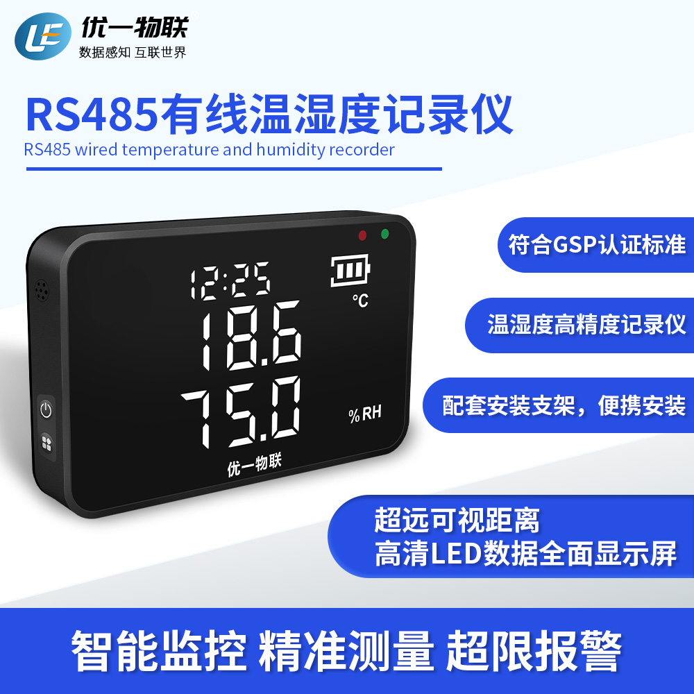 S200R RS485產品系列是一款安裝在固定場所的有線溫濕度記錄儀,高清全屏LED顯示,可視距離遠,高精度,大存儲容量,配套支架安裝。 廣泛應用于農業、食品、醫藥、化工、電子、實驗室等在線監測系統中,該記錄儀采用瑞士原裝進口一體式傳感器,內置充電鋰電池,支持外電供電充電,超低功耗,且都支持外置可調聲光報警器。